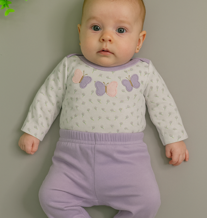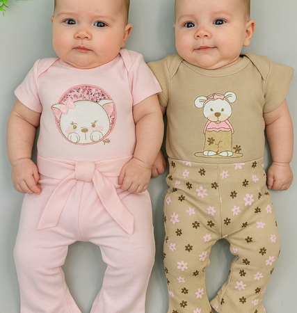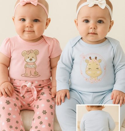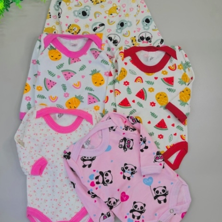 5 Body Bebê Canelado manga longa feminino– kit 5 Unidades | Estampas Variadas |100%algodao