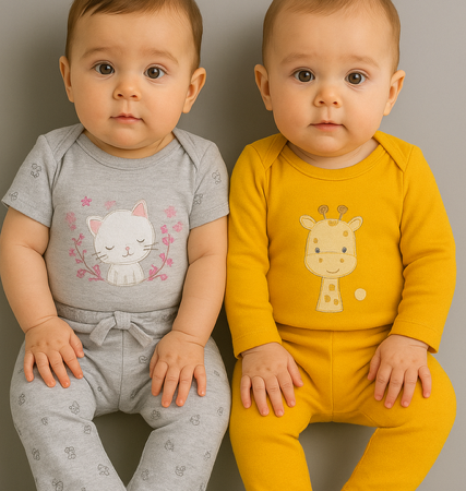 5 Bodys Bebê Canelado manga longa–kit 5 Unidades | Estampas Variadas |100%algodao