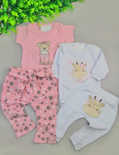 4Peças Kit 2 Conjunto Bebê Menina – | | Bordados Delicados e Estilo Confortável