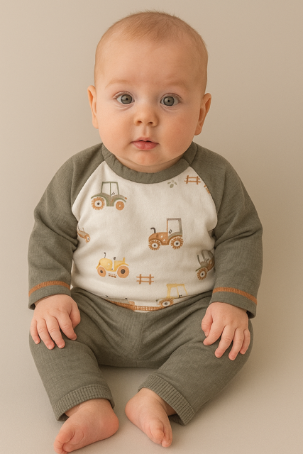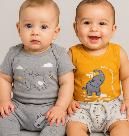 As manguinhas e a calça são confeccionadas em moletinho de toque suave, proporcionando liberdade de movimento e conforto durante todo o dia. A modelagem foi pensada para vestir com praticidade e acompanhar o ritmo dos bebês mais ativos — sem abrir mão da beleza nos detalhes.