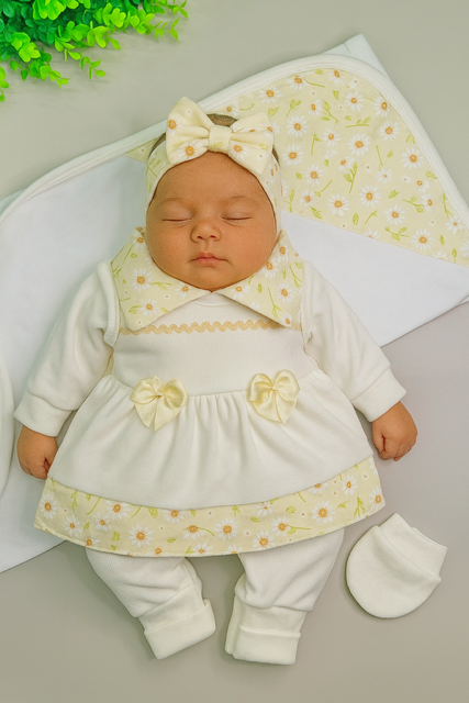 Encante-se com a delicadeza e funcionalidade da Saída Maternidade 5 Peças. Confeccionada em tecido macio e confortável, é perfeita para os primeiros dias do bebê, garantindo bem-estar e muito charme.