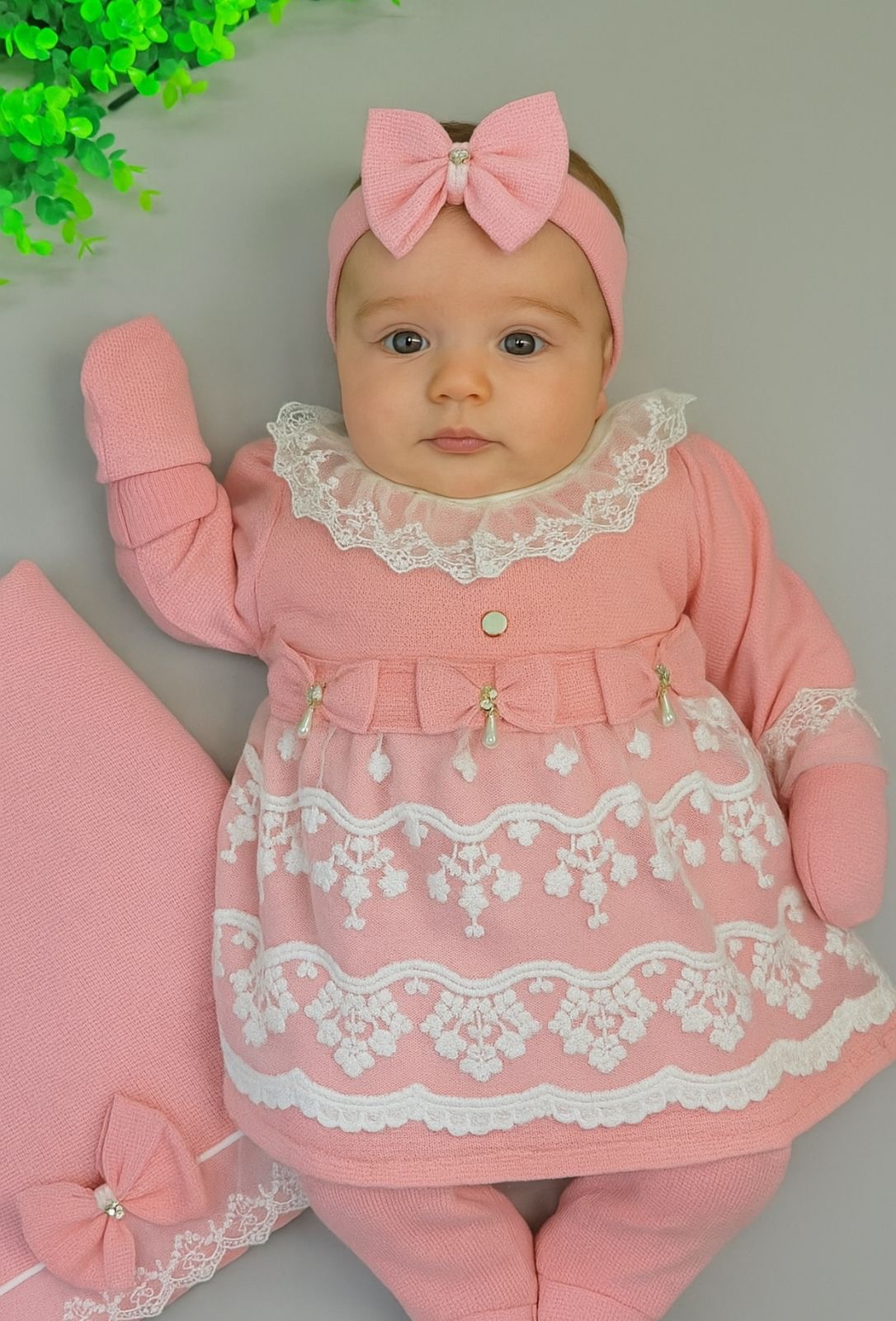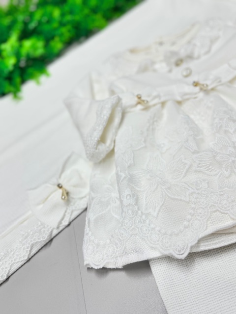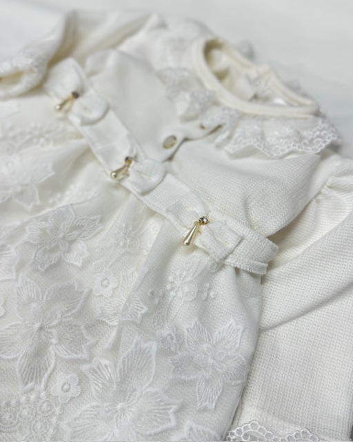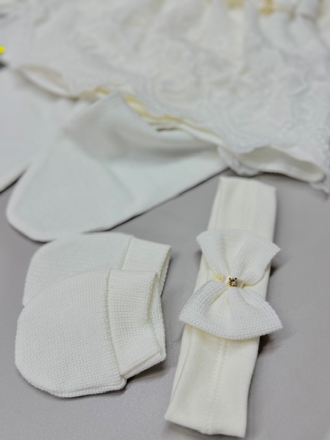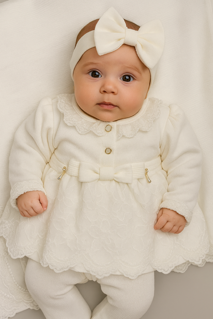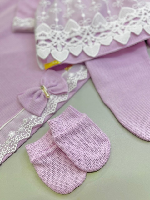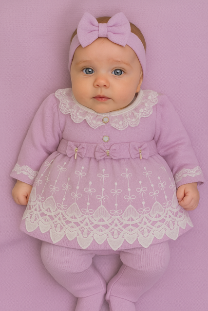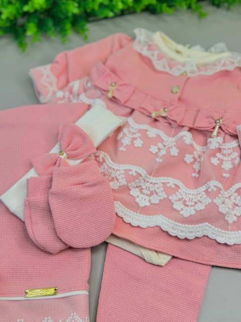 Encante-se com a delicadeza e o conforto desta Saída Maternidade de Luxo, perfeita para receber sua princesa com muito charme nos primeiros dias de vida. Confeccionada em malha tricô de alta qualidade, oferece maciez, aconchego e um caimento impecável, cuidando da pele sensível do bebê com todo carinho.